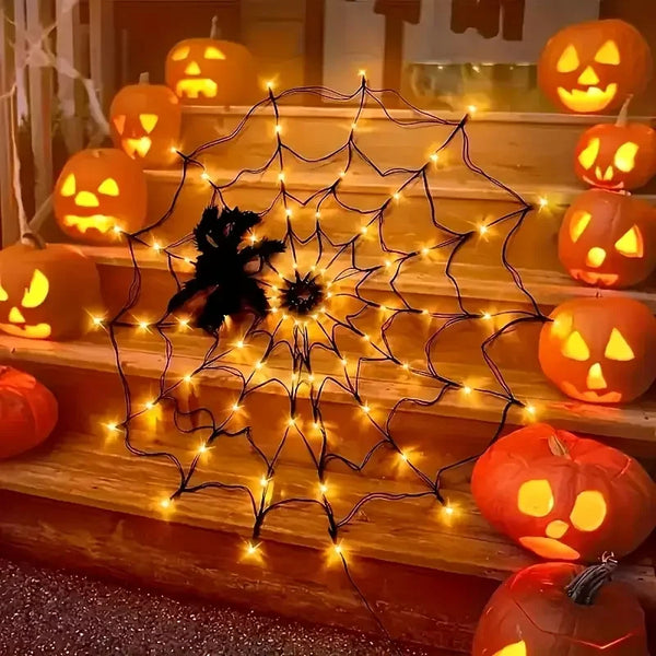 The lights feature a vibrant glow and unique spider web design, instantly transforming any space into a haunted atmosphere, perfect for Halloween or themed events.